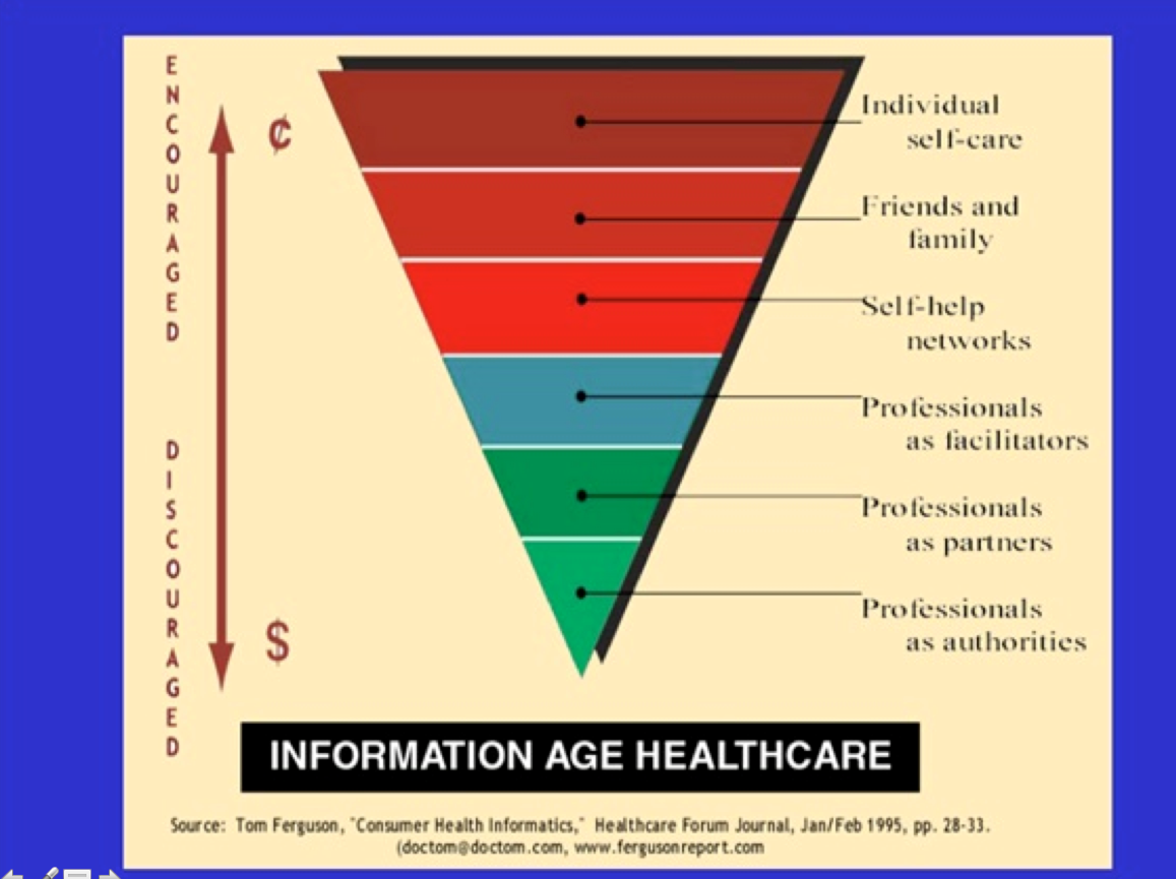 Slide 25: Tom Ferguson MD — … “was an American medical doctor, educator, and author. He was an early advocate for patient empowerment, urging patients to educate themselves, to assume control of their own health care, and to use the Internet as a way of accomplishing those goals.” (wikipedia)